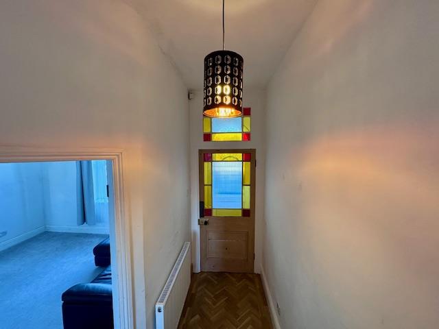 Access from the walled and gated forecourt into the entrance vestibule which opens into a bright entrance hall with stripped wooden internal door with attractive stained glass panels. With Herringbone flooring to the hall and contrasting grey carpets to the stairs. Doorway leads into the lounge and stairs leading to the first floor and ground floor.