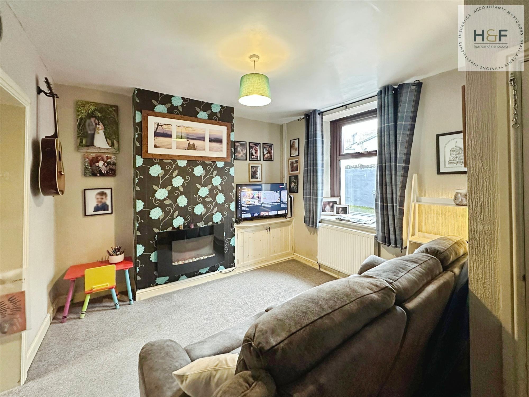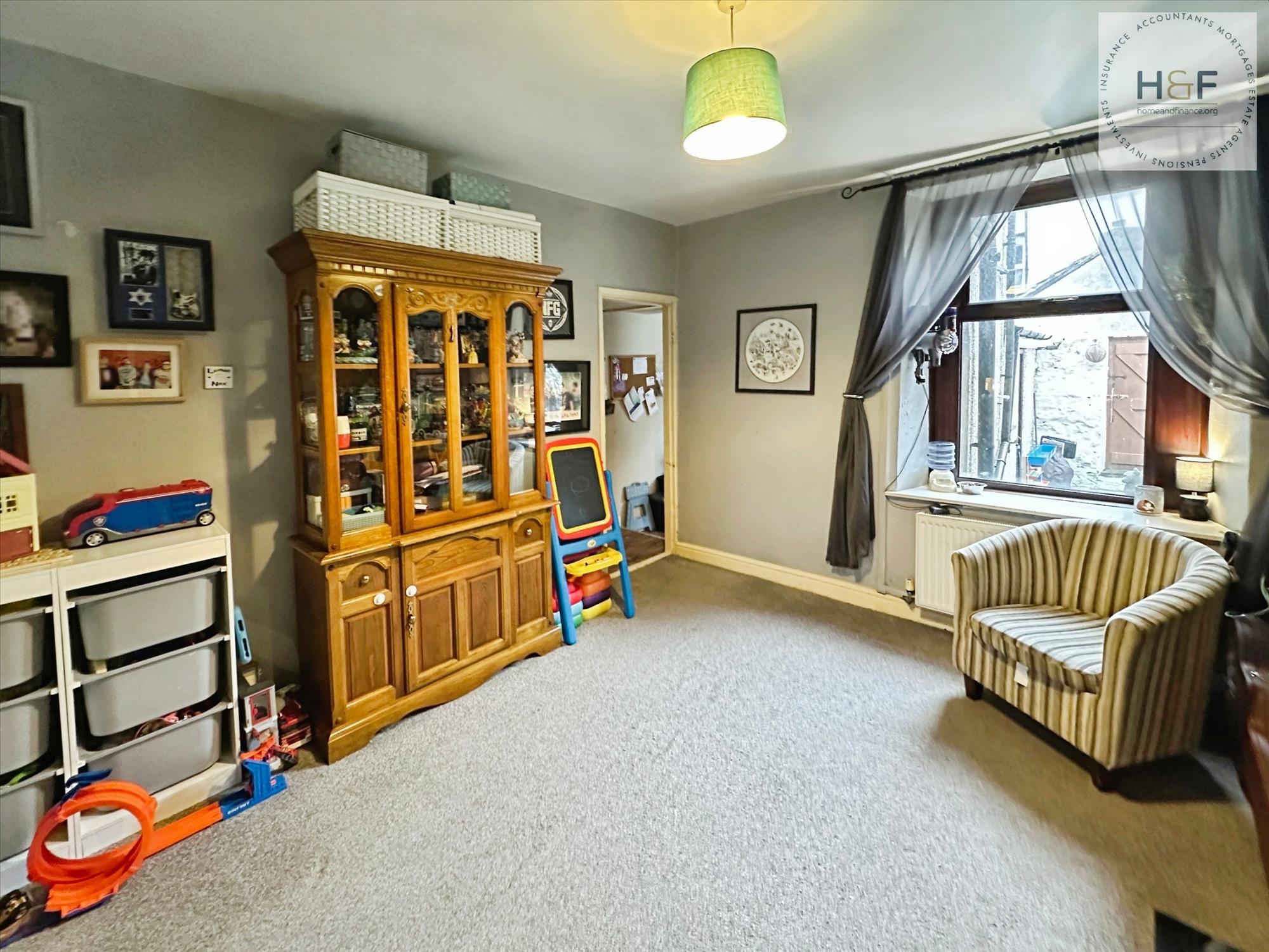 This lovely cozy room is the perfect spot to relax after a long day at work, with Upvc window to the front elevation. Neutrally decorated with feature papered wall, alcove areas, one of which has built in storage. Wall mounted electric fire, radiator and central ceiling light.