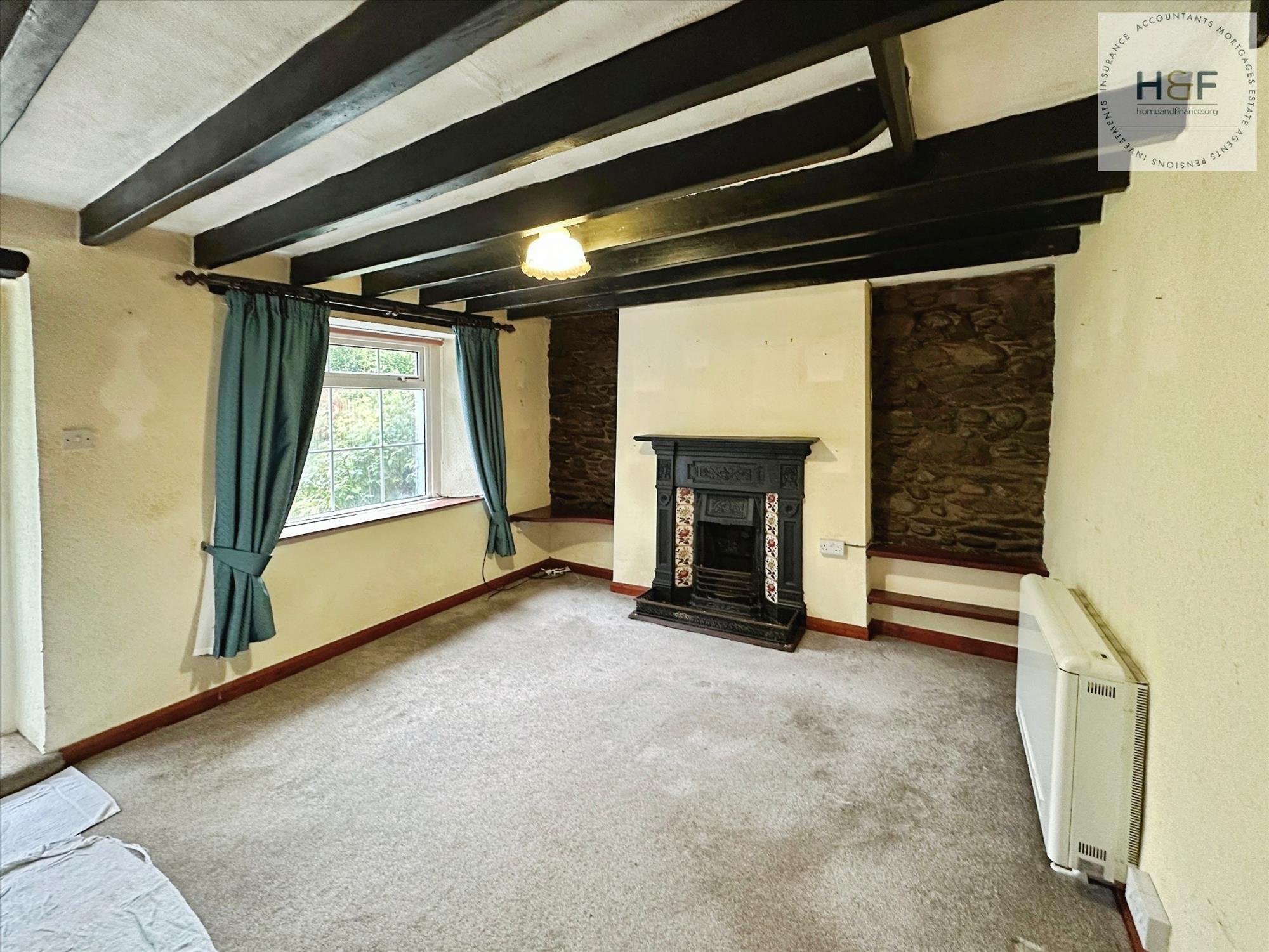 Upvc double glazed window to the front aspect, traditional fireplace with open fire, original beam ceiling, electric storage heater, power and light.