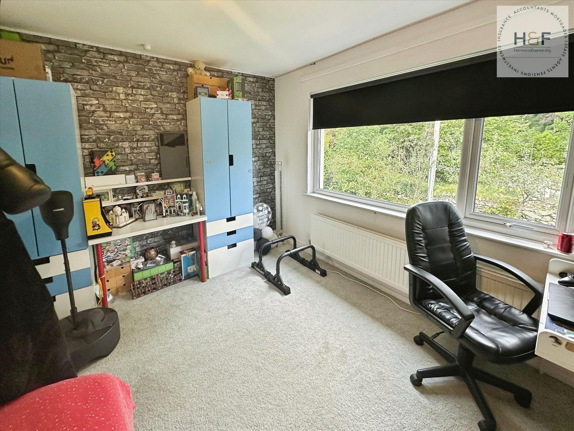 A neutrally decorated double bedroom with feature papered wall, large Upvc window to the rear elevation, ceiling light and radiator.