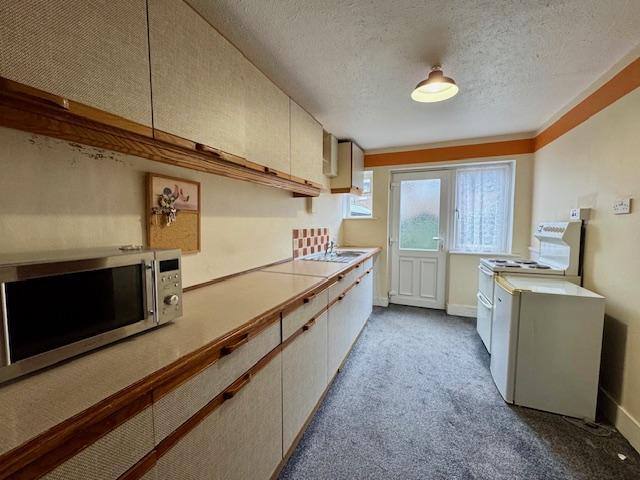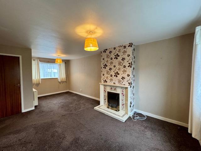 With Upvc double glazed window to the front and rear aspect. The lounge has a central feature fireplace with inset electric fire, electric storage heater, under stairs store cupboard, power and light.