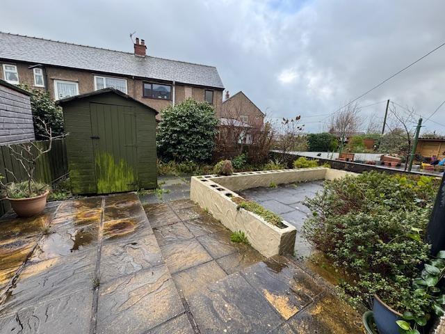 A good size rear garden area mainly flagged with borders.