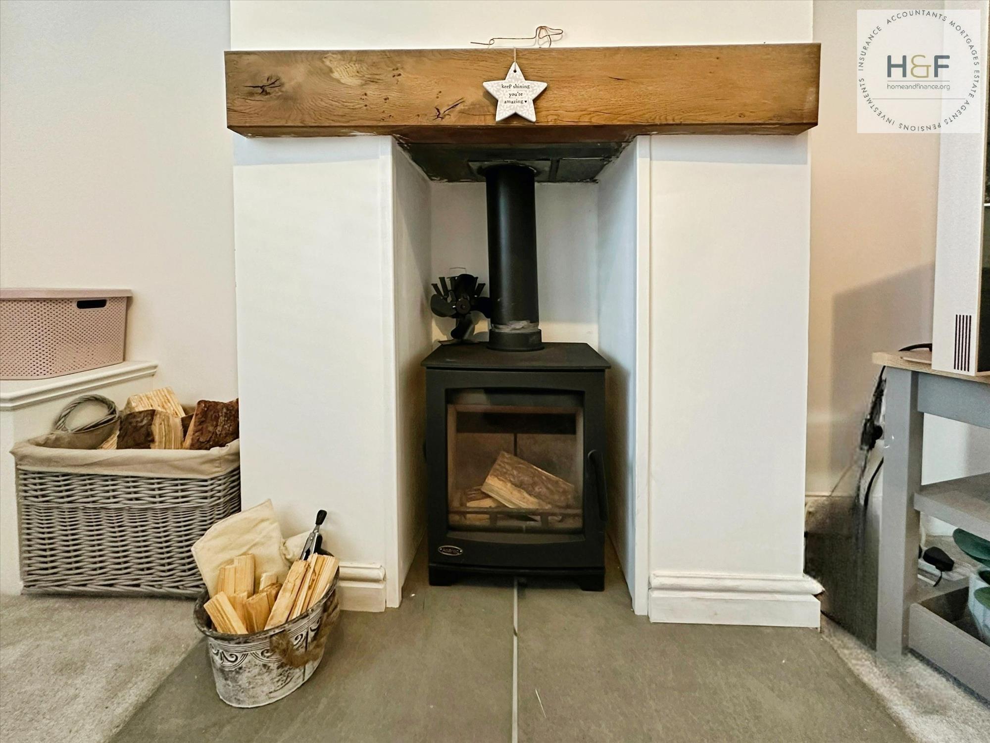 The heart of the property is the welcoming open-plan reception room with dual aspect windows, feature fireplace with woodburner, which adds to the charm and character. Double doors lead directly into the beautiful dining kitchen which includes a range of modern grey units and breakfast area, providing a sociable spot for everyday meals and relaxed mornings.