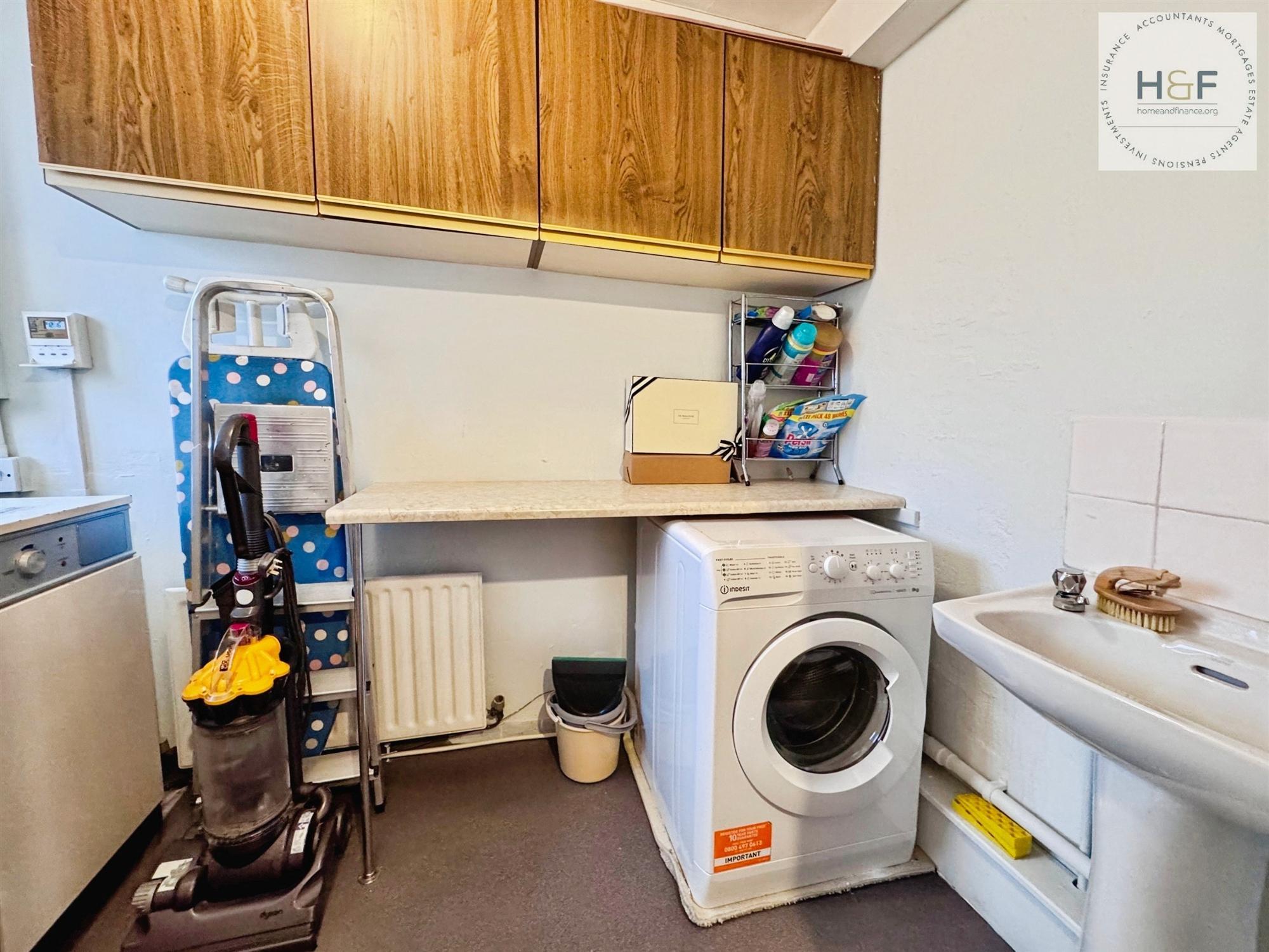 With Upvc window to the front aspect, fitted storage and work surface with under counter recess for white goods, plumbing for the washer, pedestal wash hand basin. The heating and hot water boiler is located in this space.