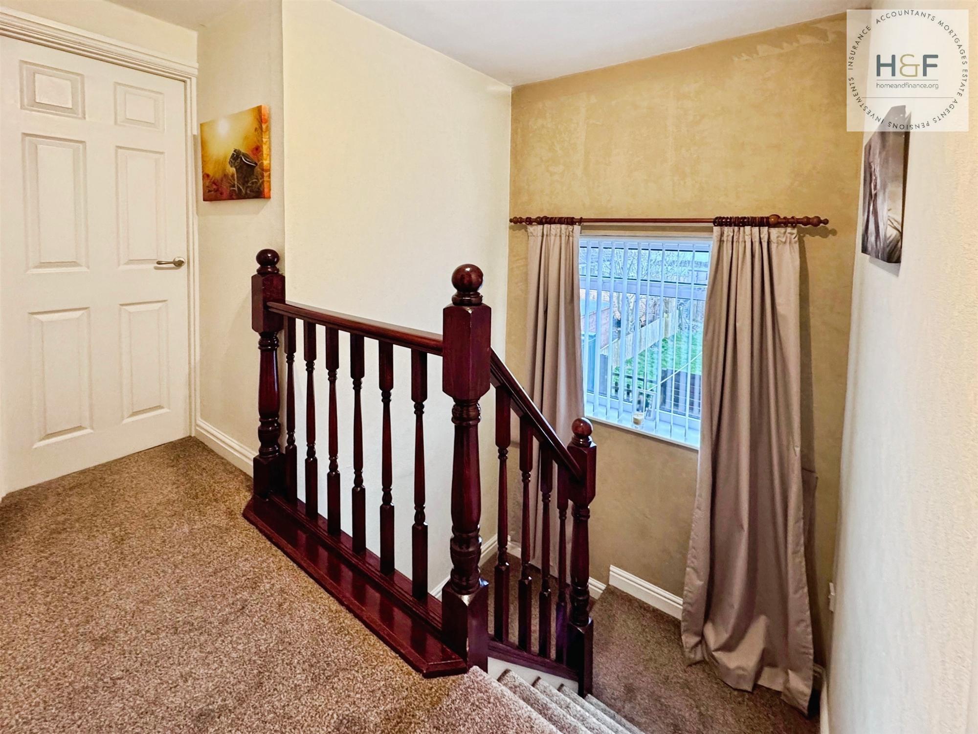 Half turn stairs from the hallway provide access to the first floor landing, Upvc double glazed window to the rear with views out over the garden and surrounding countryside.