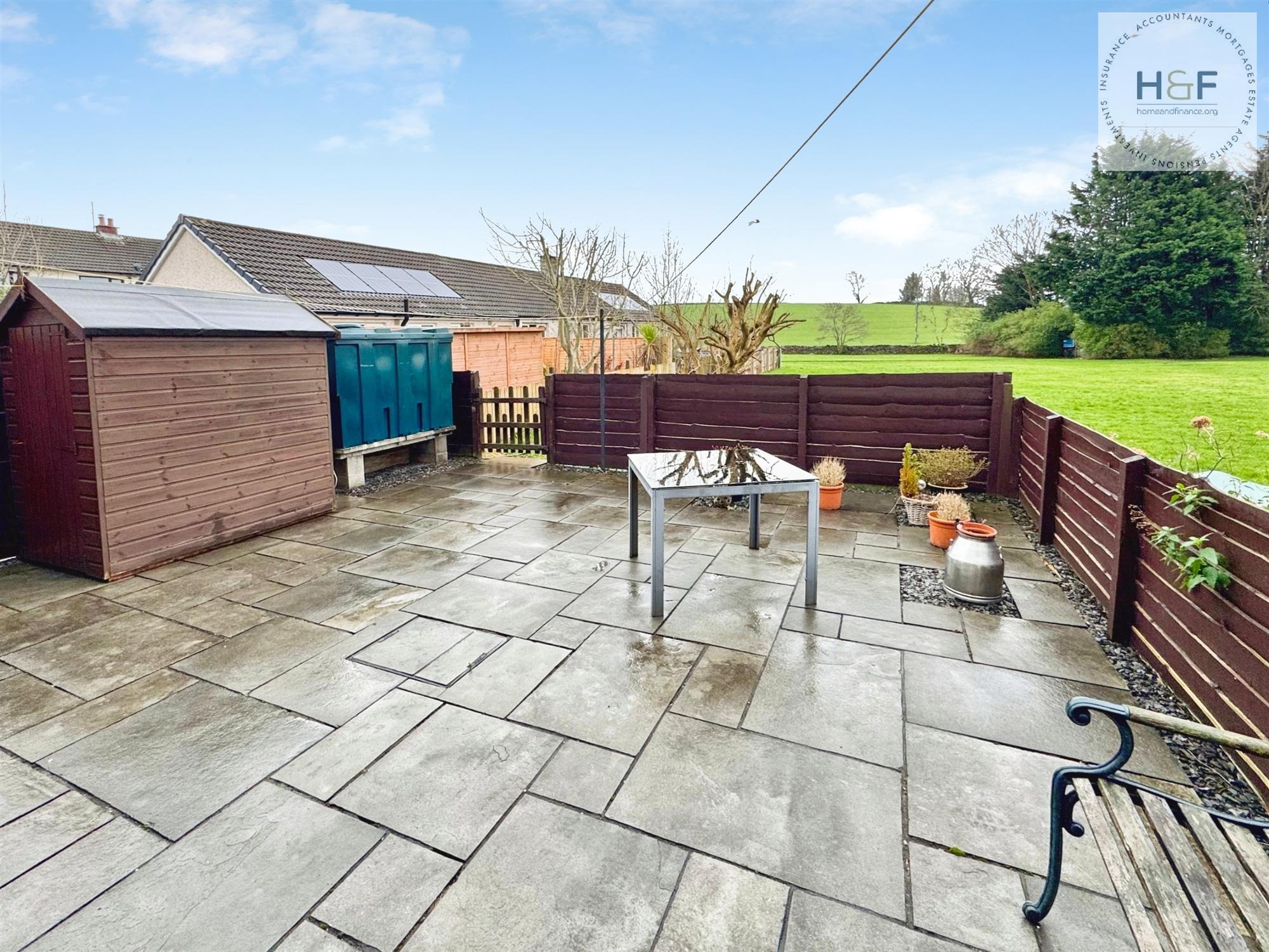 Enclosed small garden area to the front and to the rear a good size low maintenance garden with open views of the countryside.