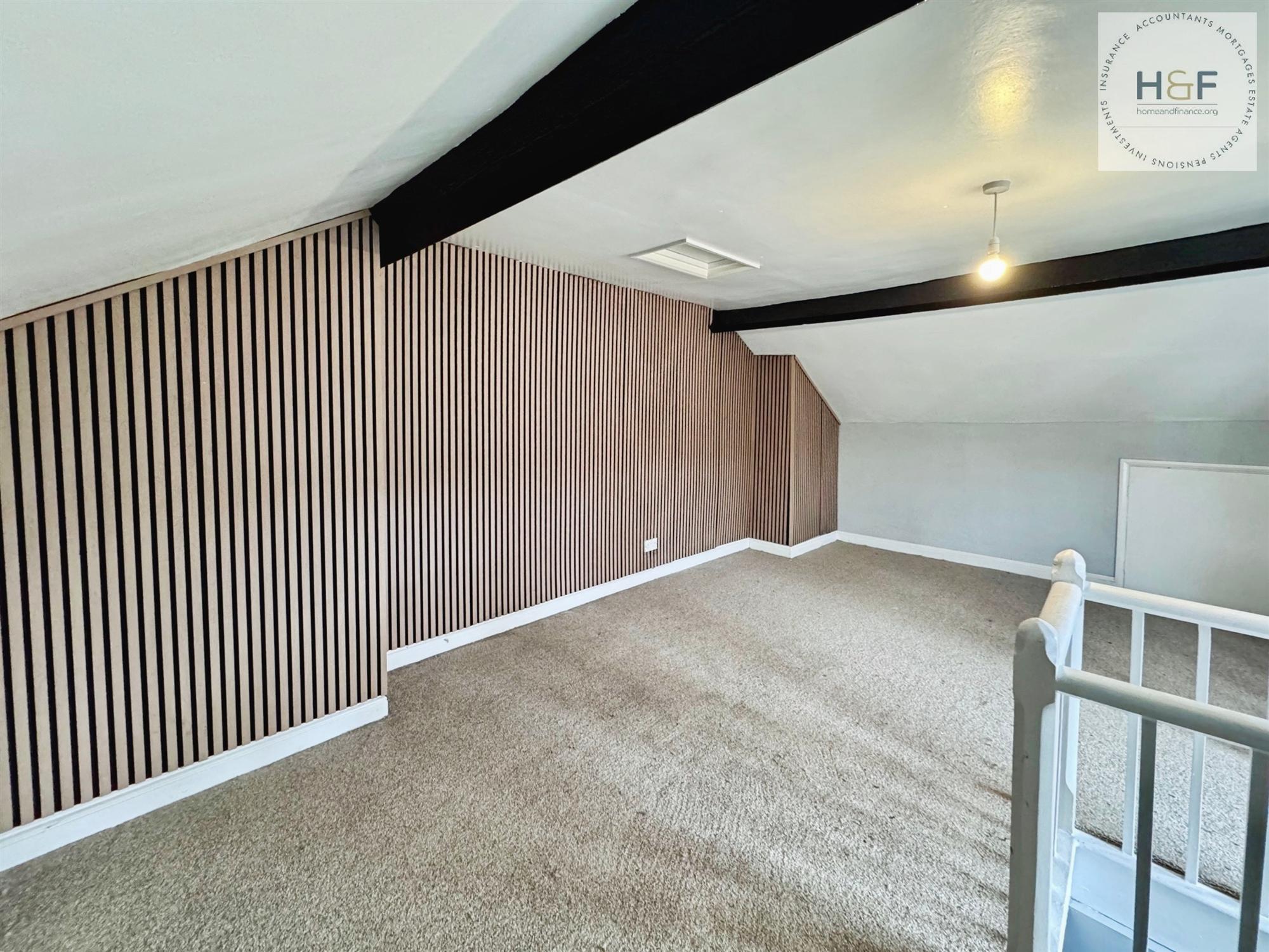 Stairs from the first floor landing provide access to a converted attic space with acoustic feature panelling to one wall, under eaves storage, radiator, power and light.
