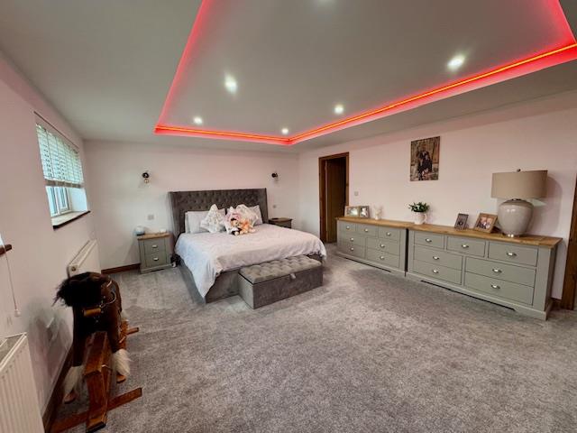A superb master bedroom with two double glazed windows to the front elevation, light modern decor, ambient lighting, two radiators and access to the dressing room.