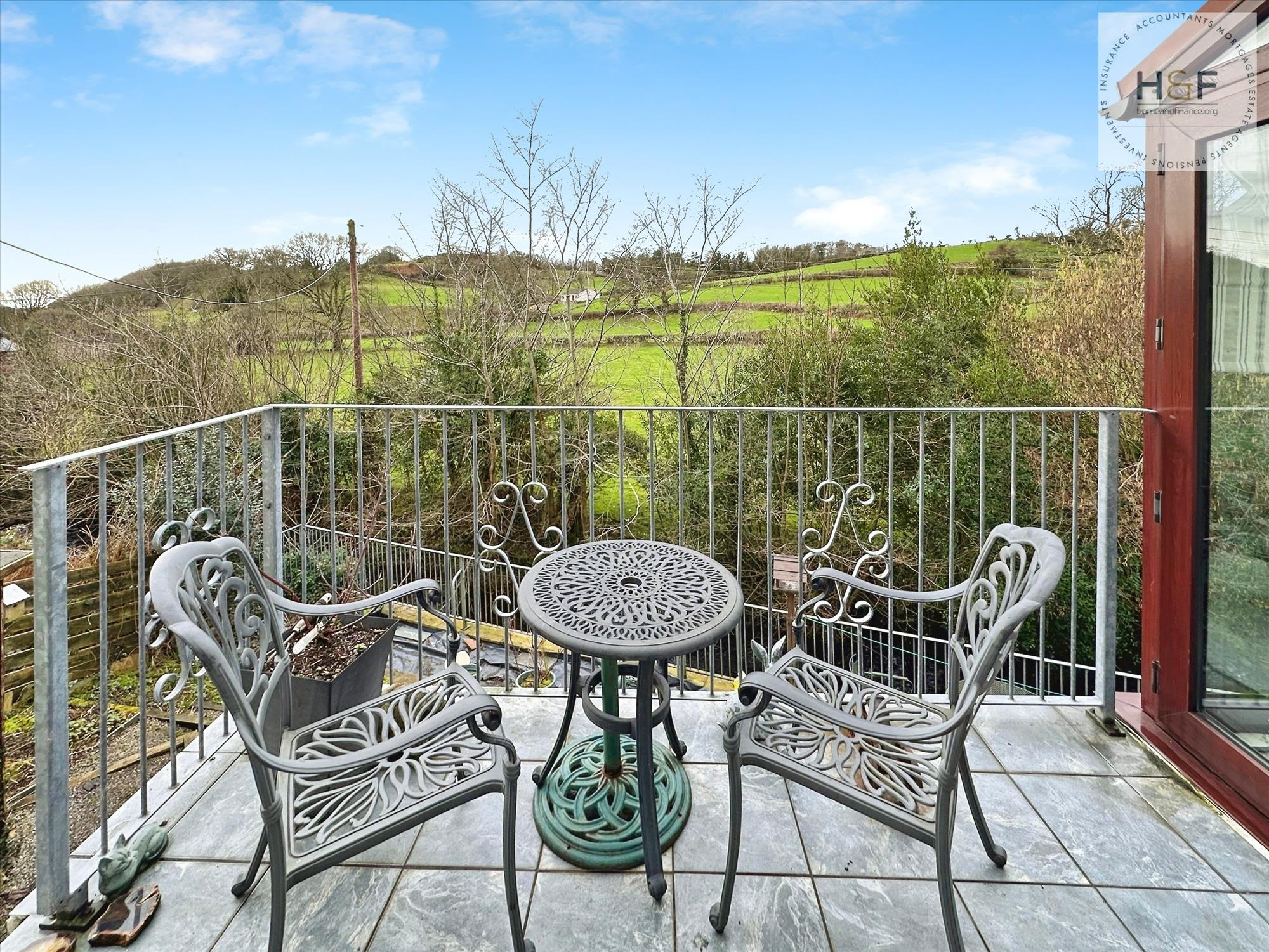This is the perfect spot to sit and relax while watching the wildlife, listening to the stream trickle by and admire the views. Double doors lead out to the raised balcony.